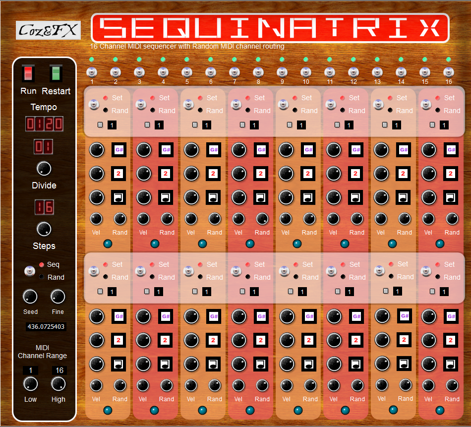 View full size Download VST 16 step Midi Sequencer with set/random Midi channel routing. Each step can be sent to a different Midi channel, meaning your sequences can combine multiple Instruments. It's big and burly, but it can come up with some very interesting effects. Coz&FX BasicsIn sound design, I find I often need basic filters and effects. These are usually included in other, more complex effects and instruments, but for memory use and simplicity, sometimes having the basic parts is best. These plugins are designed to fill that need, and more will be added regularly.